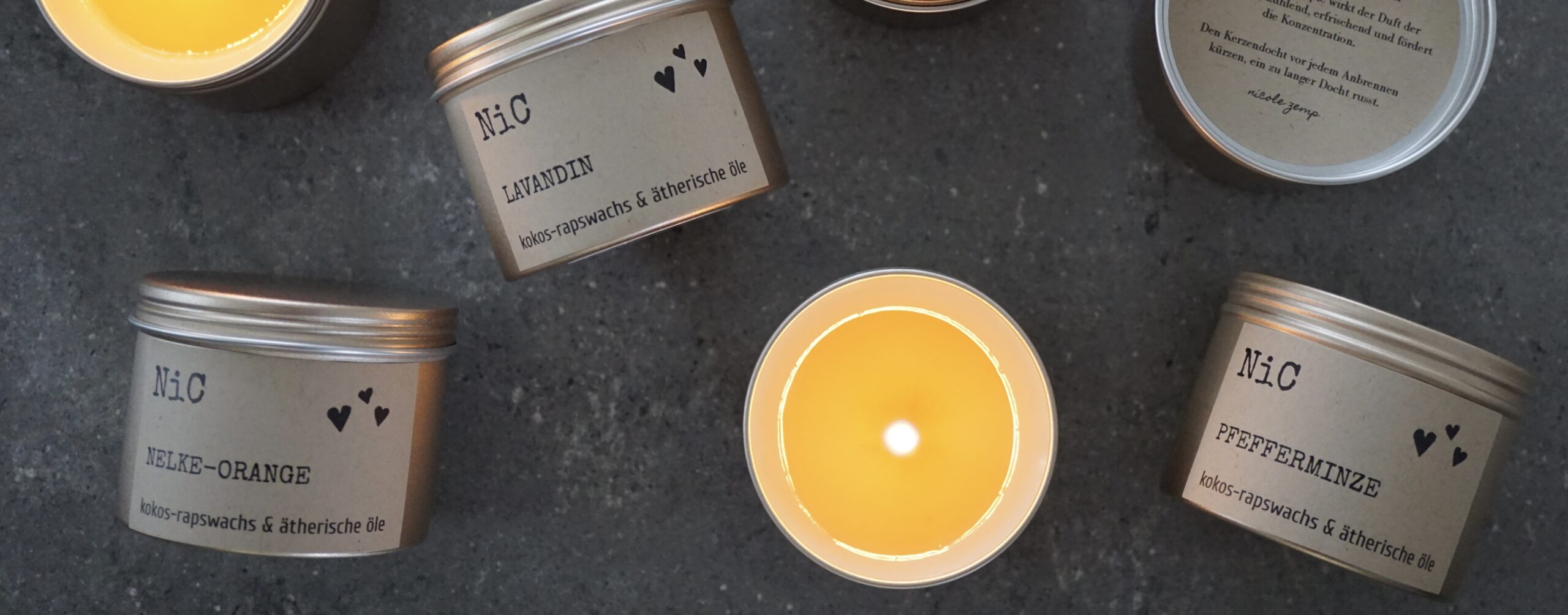 Ich verwende für meine Kerzen, eine Mischung aus Kokoswachs und Rapswachs, ein rein pflanzlich, geprüfter Wachs und benütze 100% reine natürliche ätherische Öle.